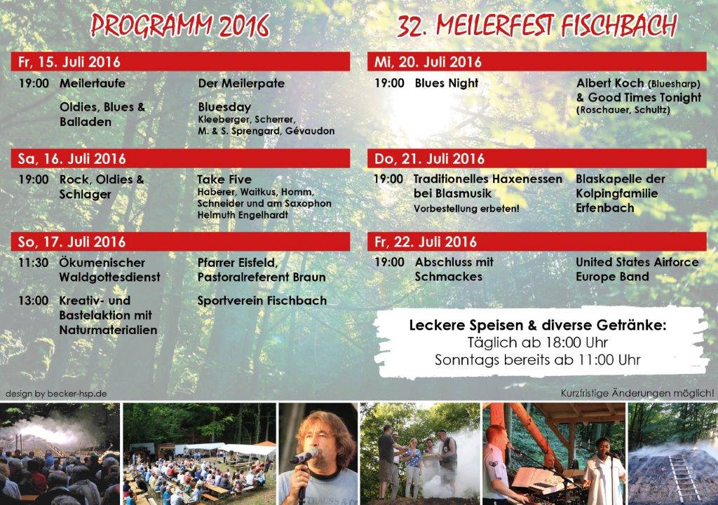 Freitag, 15.07. Start „Meilerfest Teil 1“ um 19.00 Uhr mit der traditionellen Meilertaufe, bevor die lokale Fischbacher Band „Bluesday“ die Gäste mit tollen Oldies, Blues und Balladen auf die Festtage einstimmt.