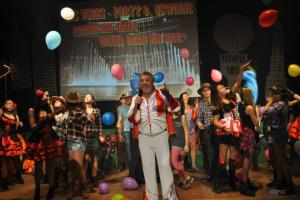 Mit einer Bourlesqueshow heizten zwei Rumba Ladies dem Publikum ein. Zu Flashdance, zeigte das Männerballett wie "Mann" grazil mit dem richtigen Outfit, gekonnt Aerobic betreibt, YMCA - die Choreographie war einfach klasse. Ein Sketch gespielt von Th. Böckly (Besoffener) und B. Scherrer (Polizist) durfte nicht fehlen. Einer der Höhepunkte war der Auftritt der Aerobictruppe mit ihrem ABBA-Medley, die selbstgenähten Kostüme erstrahlten die Halle, es wurde kräftig mitgesungen und getanzt. Der Countrytanz heizte dem stimmungsgeladen Publikum voll ein. Den krönenden Abschluss des vielfältigen Programms bildete traditionell die Hitparade, mit "I sing äh Lied fer di" von Thorsten, "Rock mi" von Claus und "Country Roads" von Sascha & Steffi, verabschiedeten sich die Aktiven bis 2015.